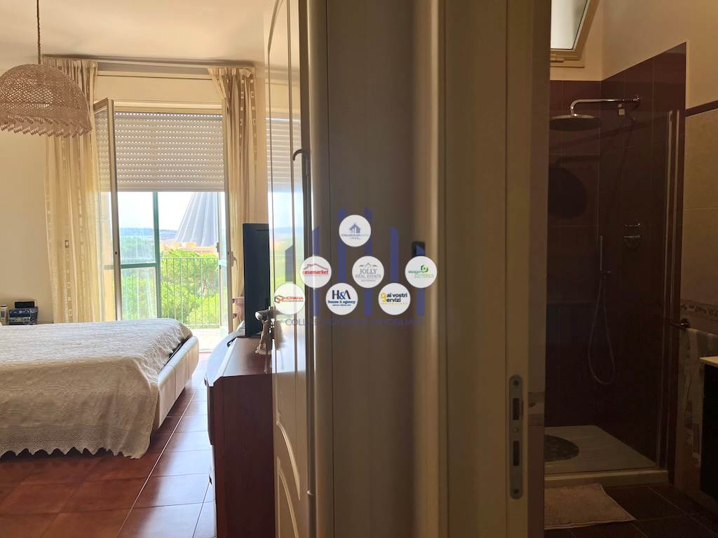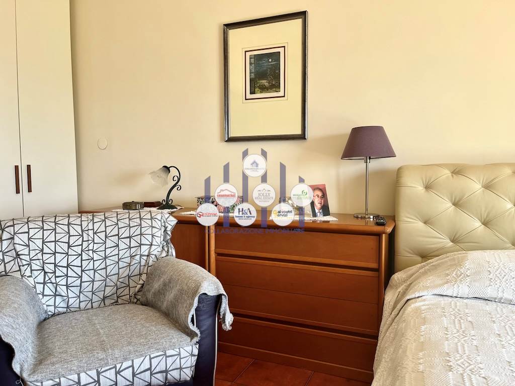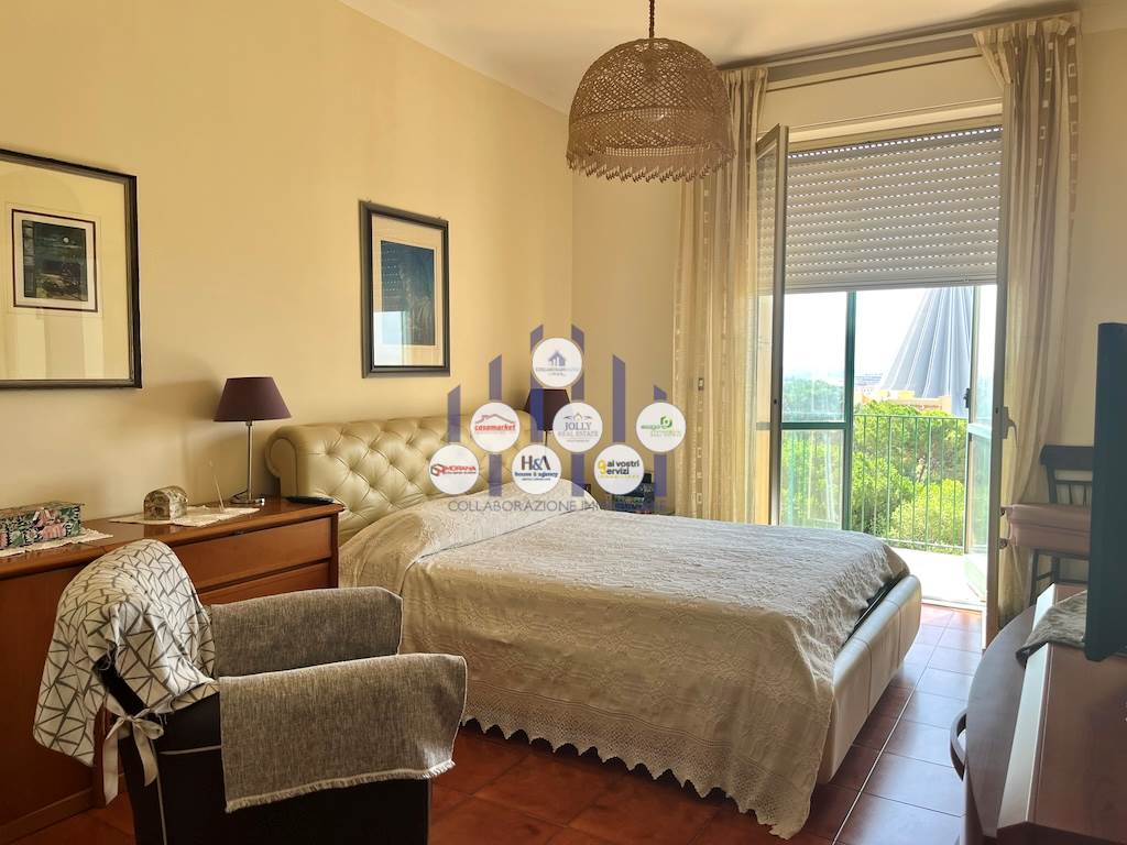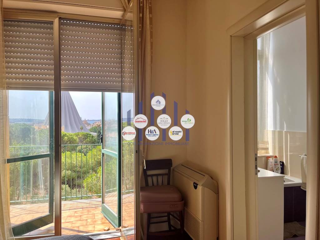 L’immobile si compone di un ampio ingresso che conduce a un luminosissimo salone doppio, reso ancora più arioso dalla presenza di tre balconi che circondano l’abitazione e offrono affacci differenti e suggestivi. La cucina, separata dalla zona giorno, è adiacente a una pratica lavanderia. La zona notte ospita tre camere, di cui due adibite a camere da letto e una attualmente utilizzata come studio, ideale per chi lavora da casa o desidera uno spazio riservato e tranquillo. I bagni sono due: uno padronale, riservato alla camera matrimoniale, dotato di vasca; l’altro, più ampio e funzionale, è servito da una comoda doccia. Tutti gli ambienti godono di una luminosità naturale eccellente, garantita dalla posizione elevata dell’appartamento e dalle numerose aperture verso l’esterno.