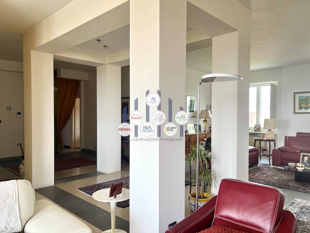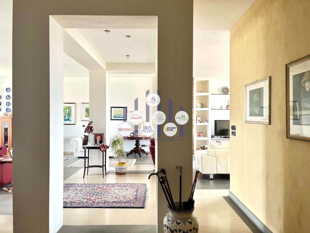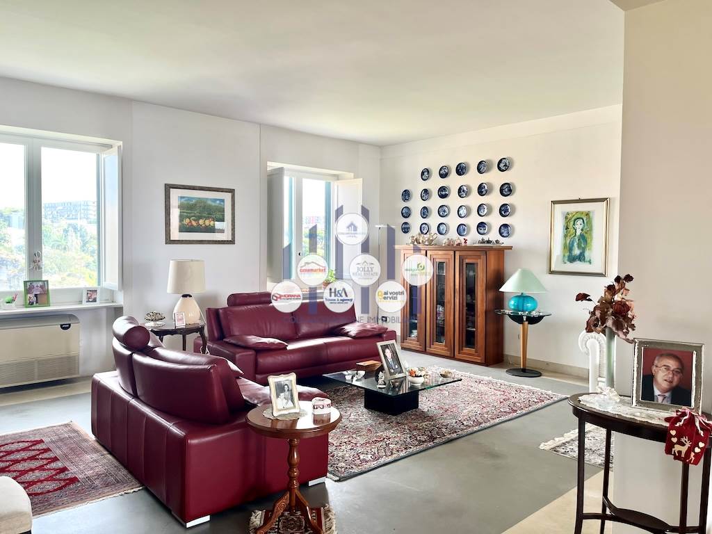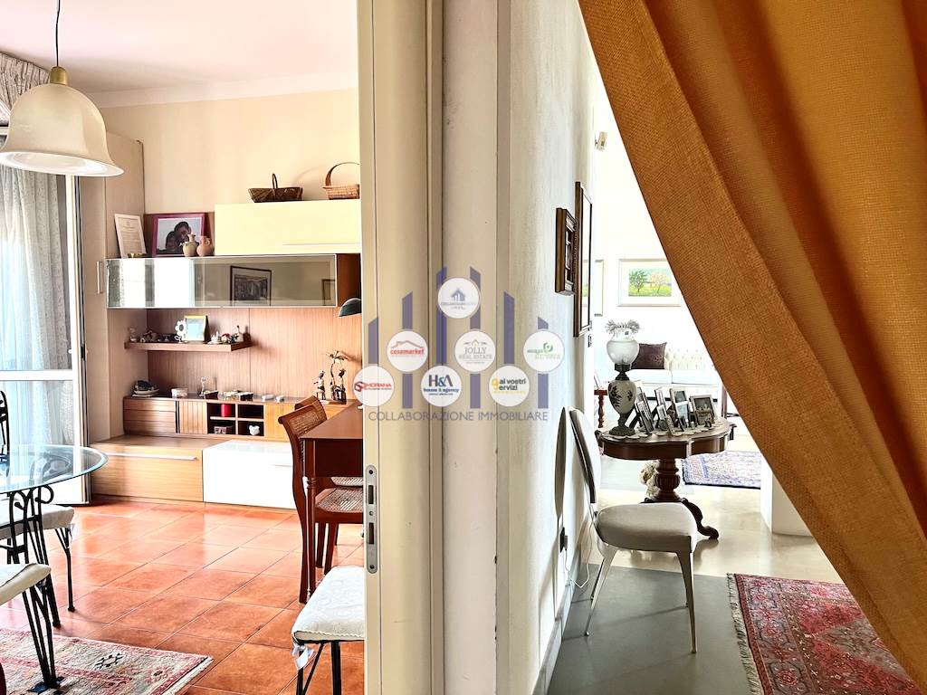 L’immobile si compone di un ampio ingresso che conduce a un luminosissimo salone doppio, reso ancora più arioso dalla presenza di tre balconi che circondano l’abitazione e offrono affacci differenti e suggestivi. La cucina, separata dalla zona giorno, è adiacente a una pratica lavanderia. La zona notte ospita tre camere, di cui due adibite a camere da letto e una attualmente utilizzata come studio, ideale per chi lavora da casa o desidera uno spazio riservato e tranquillo. I bagni sono due: uno padronale, riservato alla camera matrimoniale, dotato di vasca; l’altro, più ampio e funzionale, è servito da una comoda doccia. Tutti gli ambienti godono di una luminosità naturale eccellente, garantita dalla posizione elevata dell’appartamento e dalle numerose aperture verso l’esterno.