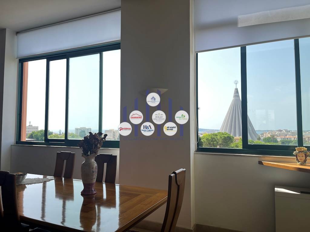 La vista è uno degli elementi distintivi di questo attico: lo sguardo spazia dalle Catacombe di San Giovanni al maestoso Santuario della Madonna delle Lacrime, fino ad arrivare al mare, offrendo un panorama aperto e suggestivo che accompagna ogni momento della giornata con atmosfere diverse.
