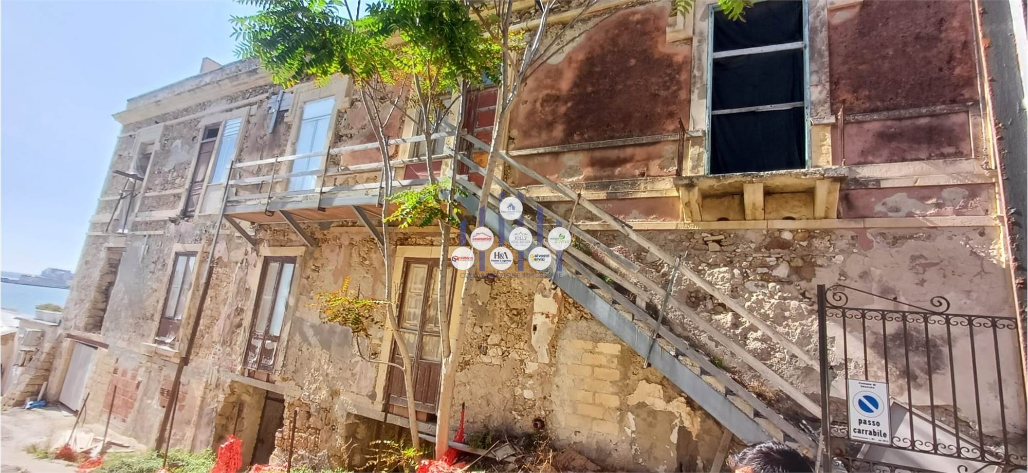 Proponiamo la vendita di uno stabile indipendente di circa 270 mq. oltre terrazzo e garage e discesa al mare. La proprietà è composta da due unità immobiliari unificabili se si vuole. Al piano terra abbiamo un appartamento composto da due vani ed accessori; al piano superiore un grande appartamento con ingresso in un grande salone con soffitti alti, camera da letto matrimoniale con bagno dedicato, altra camera con altrettanto bagno, comoda cucina, ripostiglio e ampio terrazzo con spettacolare vista mare e dell'Isola di Ortigia. L'immobile è stato ristrutturato per quanto riguarda tetti, solai ed impianti; per il resto è da rifinire a proprio gusto.